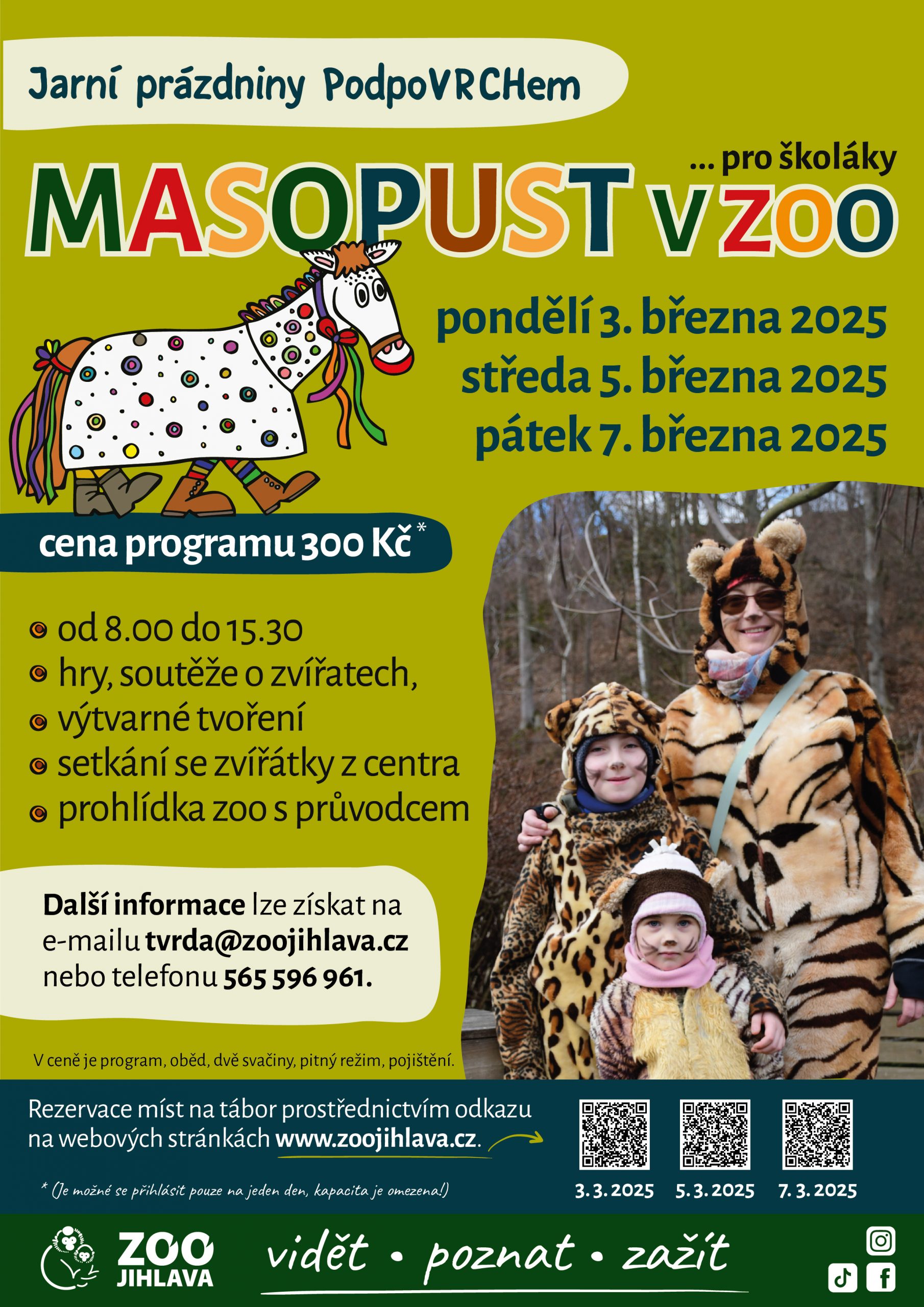 Domů » Akce » Jarní prázdniny PodpoVRCHem Jarní prázdniny PodpoVRCHem Datum: 7. 3. 2025 Začátek: 08.00 Cena: 300 Kč Kapacita: 18 Více informací a přihlašování zde. Sdílet na Facebook Sdílet na Twitter Kontaktní osoba Mgr. Pavla Jarošová Zástupce ředitele, Vedoucí oddělení vzdělávání +420 565 596 960 jarosova@zoojihlava.cz