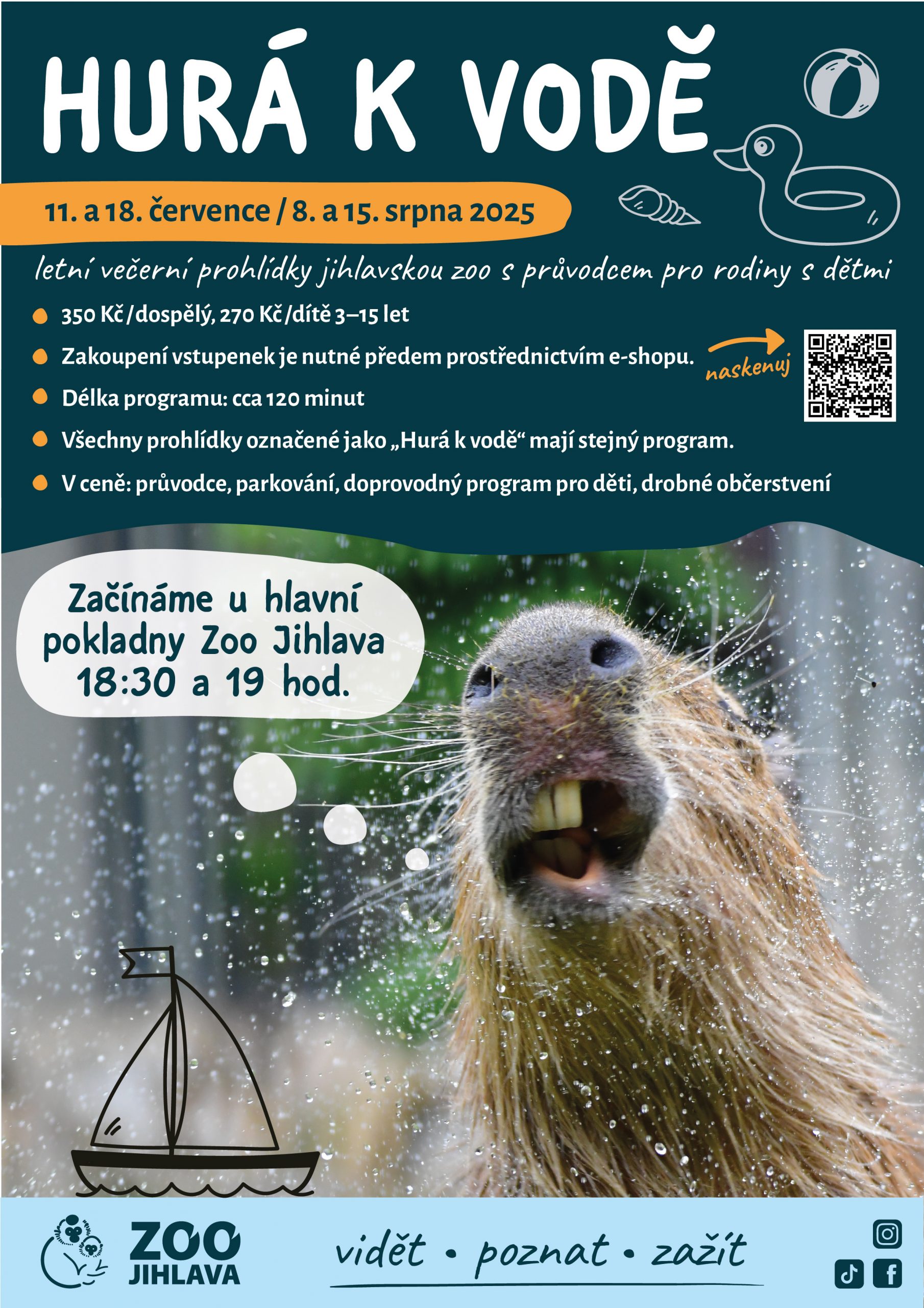 Vydejte se s námi na dobrodružnou cestu za zvířaty, která žijí u vody – akce Hurá k vodě přináší letní zábavu pro celou rodinu! Těšit se můžete na komentovanou prohlídku plnou zábavných úkolů a vodních zvířecích přátel.