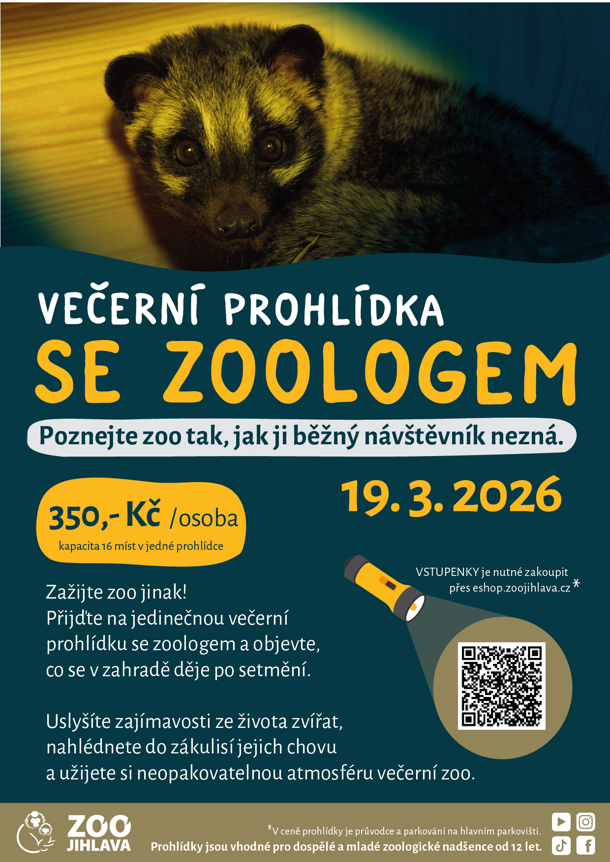 Prohlídky jsou vhodné pro dospělé a mladé zoologické nadšence od 12 let.