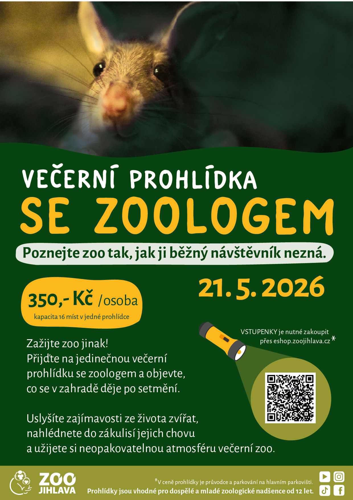 Prohlídky jsou vhodné pro dospělé a mladé zoologické nadšence od 12 let.