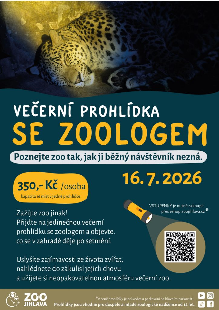Chcete zjistit, jak se chovají zvířata v jihlavské zoologické zahradě po zavírací době? Využijte možnosti prohlédnout si ji při večerní prohlídce s průvodcem. Od března do října můžete zažít speciální večerní prohlídky se zoologem.