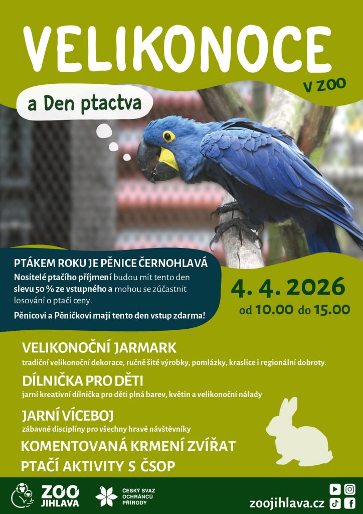 Přijďte s námi přivítat jaro do zoo a užít si den plný velikonoční atmosféry, zábavy i zajímavostí ze světa zvířat. Akce Velikonoce v ZOO a Den ptactva nabídne program pro děti i dospělé.