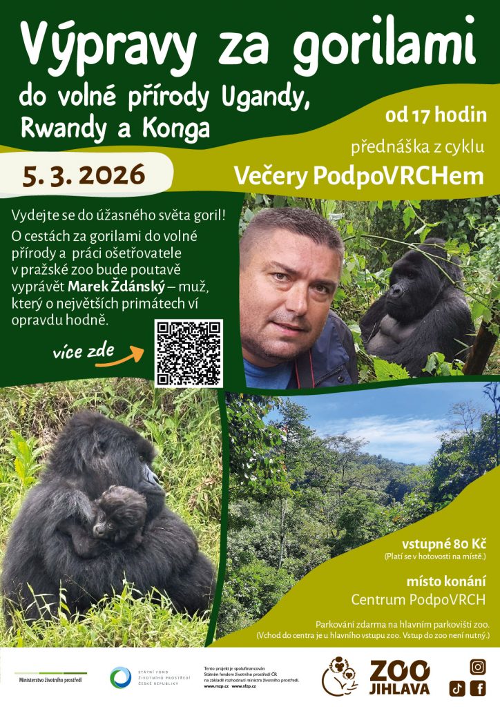 O práci ošetřovatele v zoo a o cestách za gorilami do volné přírody přijede vyprávět Marek Ždánský, který ví o těchto největších primátech spoustu zajímavostí.