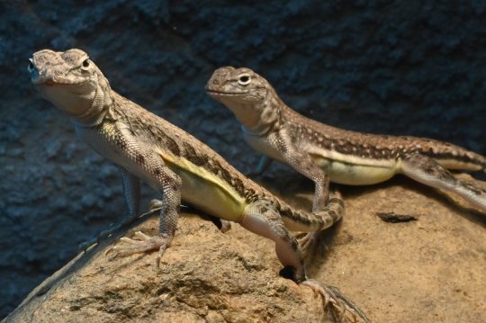 | Zajímavost | Je velice aktivní během dne, a to i přes největší horka. Rád se vyhřívá na přímém slunci, během čehož střídavě zvedá vždy dvě nohy. Noc tráví v podzemních |